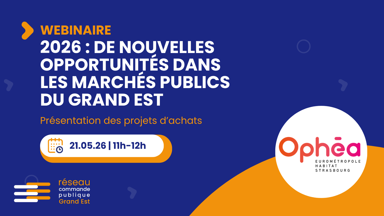Vous êtes artisan, entreprise du BTP, prestataire de services, fournisseur, entreprise de l’ESS et souhaitez découvrir les projets d’achats des acheteurs publics du Grand Est pour 2026, venez assister à nos webinaires tout au long du 1er semestre pour découvrir leurs opportunités de marchés.